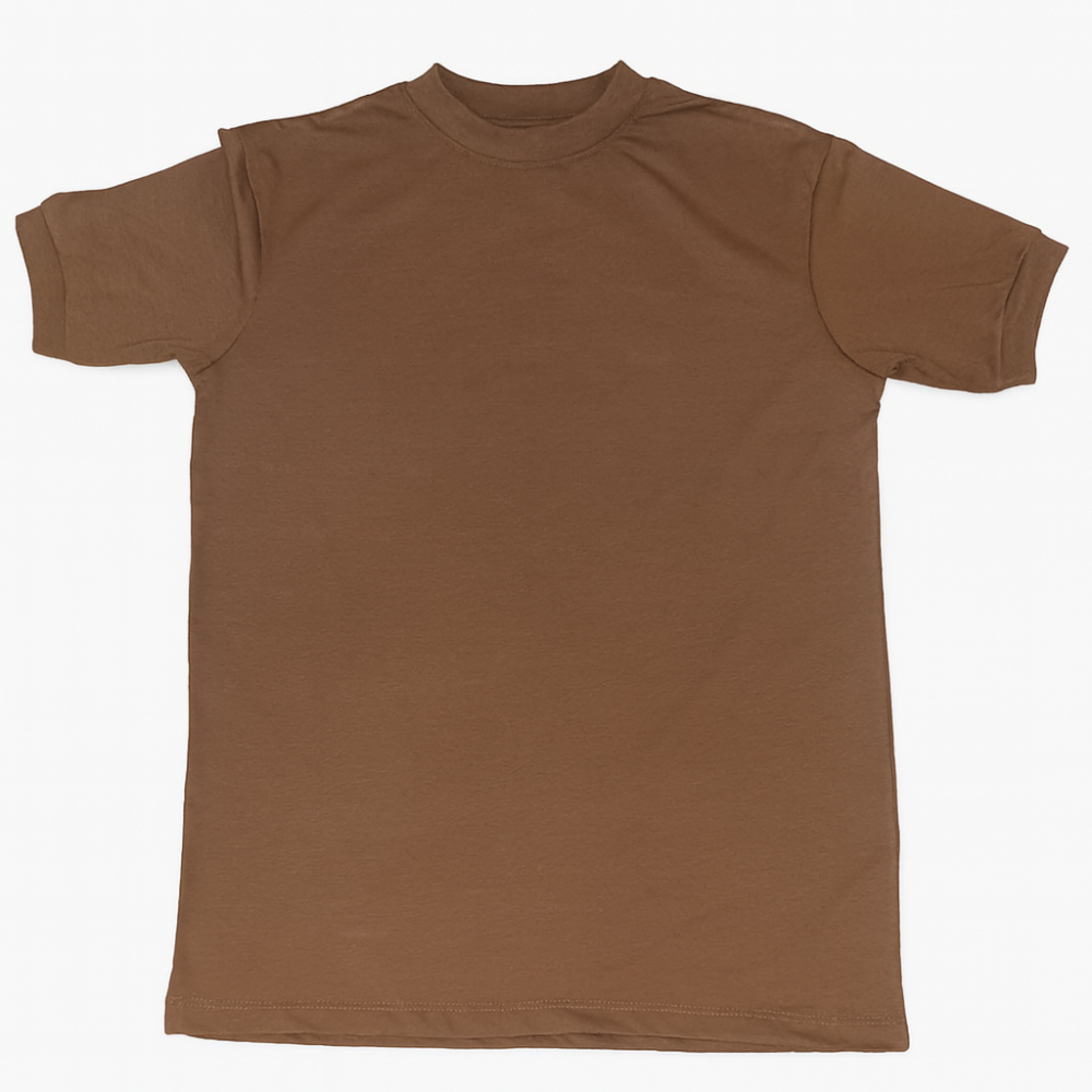 تيشرت داخلي باللون البني الرسمي والمعتمد لمنسوبي وزارة الدفاع العسكريين.تتميز بياقة مرتفعة مرنة وضيقة، بالإضافة إلى الأكمام.يمكن ارتداؤها تحت الزي الرسمي أو لأي أنشطة أخرى.مريحة ، مرنة، وباردة.مصنوعة من القطن المصري 100%.