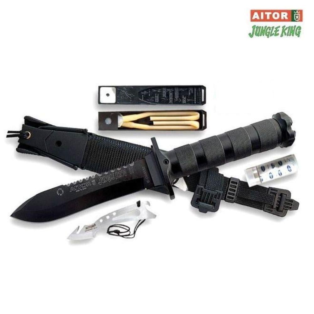 The Jungle King product line from the Spanish manufacturer Aitor can be considered a classic among high-quality survival knives. If you are looking for a survival knife you should choose a Jungle King knife with its stainless steel blade.